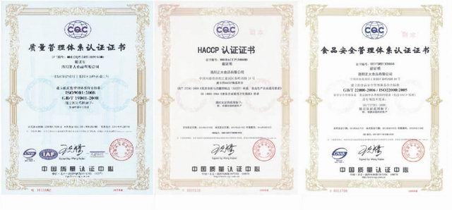 2013年8月19日,公司正式獲得食品安全管理、HACCP管理體系兩個管理體系的認證證書。公司自2012年11月18日開業(yè)以來,在全體干部員工齊心協(xié)力基礎(chǔ)上,已成功通過了質(zhì)量管理體系、食品安全管理體系、HACCP管理體系三個管理體系認證,為產(chǎn)品在全國各地市場準入、出口備案及管理水平提升奠定了基礎(chǔ)。