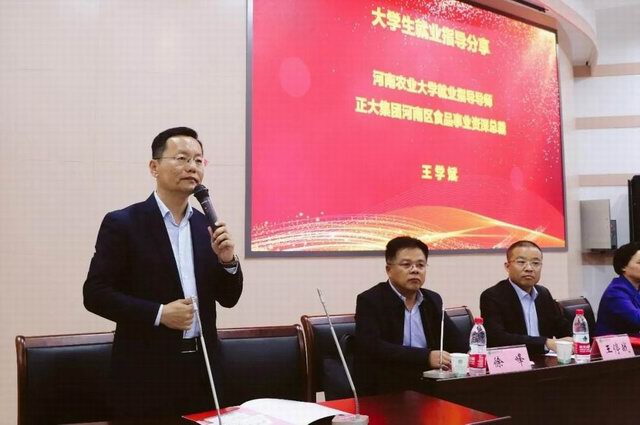 王學(xué)斌***總裁講述了自己的奮斗歷程,并結(jié)合自身經(jīng)歷和正大集團(tuán)事業(yè)規(guī)劃,為在場(chǎng)畢業(yè)生做就業(yè)指導(dǎo)報(bào)告。為大家的就業(yè)選擇提供指導(dǎo),提醒同學(xué)們選擇自己適合的工作。