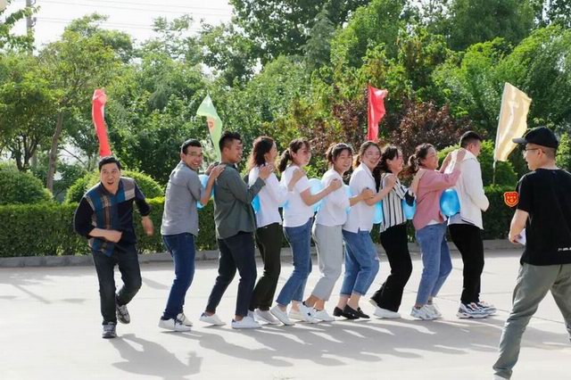 比賽開始之前、各團隊隊長帶領隊員齊喊口號、振奮士氣!隨著一聲哨響、各項游戲比拼正式開始。有齊心協力的團結一致、有跳大繩的有條不紊、有新式保齡球的輕松愉悅、有蜈蚣競走的歡樂開懷、有運水接力的堅持不懈;游戲一項接著一項,笑聲不斷、趣味十足!