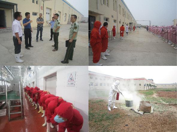 吉林德惠寶源豐禽業(yè)發(fā)生特大事故,造成120人遇難,在全國安全月伊始之時(shí)發(fā)生如此重大事故,教訓(xùn)慘痛。為吸取這一慘痛的經(jīng)驗(yàn)教訓(xùn),落實(shí)于董事長關(guān)于安全整頓的要求,進(jìn)一步增強(qiáng)員工安全意識(shí)和自我救助能力,公司于2013年6月7日在各分廠車間、制冷機(jī)房和廠區(qū)空地三處演習(xí)地點(diǎn)舉行了緊急疏散、液氨泄漏緊急處置和消防滅火的實(shí)戰(zhàn)演練。