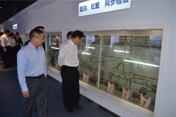 鮑市長一行首先通過參觀廊參觀了公司生產(chǎn)現(xiàn)場。鄭寶振副董事長對洛陽市鮑市長一行蒞臨洛陽正大指導表示歡迎,并對洛陽市政府一直以來對正大集團在洛陽項目的支持表示感謝。在公司三樓會議室,喬光斌總經(jīng)理匯報了洛陽正大生產(chǎn)經(jīng)營、項目建設規(guī)劃、食品安全管理、市場運作模式、公司發(fā)展愿景等相關工作情況;鄭寶振副董事長表示:洛陽正大食品有限公司是集團投資建設的***家生豬屠宰和豬肉深加工項目,集團對該項目高度重視,利用正大集團優(yōu)勢,圍繞洛陽正大100萬頭生豬屠宰項目,在洛陽地區(qū)打造從玉米種植、飼料加工、良種豬培育、商品豬養(yǎng)殖、屠宰分割、肉制品精深加工、冷鏈物流、連鎖專賣為一體的全產(chǎn)業(yè)鏈發(fā)展模式,確保產(chǎn)品的安全可追溯,下一步要高標準建設洛陽正大深加工項目,并將在洛陽周邊偃師、宜陽、伊川、孟津等區(qū)域拓展安全豬源養(yǎng)殖基地,洛陽正大食品有限公司向洛陽市民提供安全、健康、營養(yǎng)、美味的正大食品,希望市政府在洛陽正大深加工項目建設和生豬養(yǎng)殖建設方面給予支持和幫助。